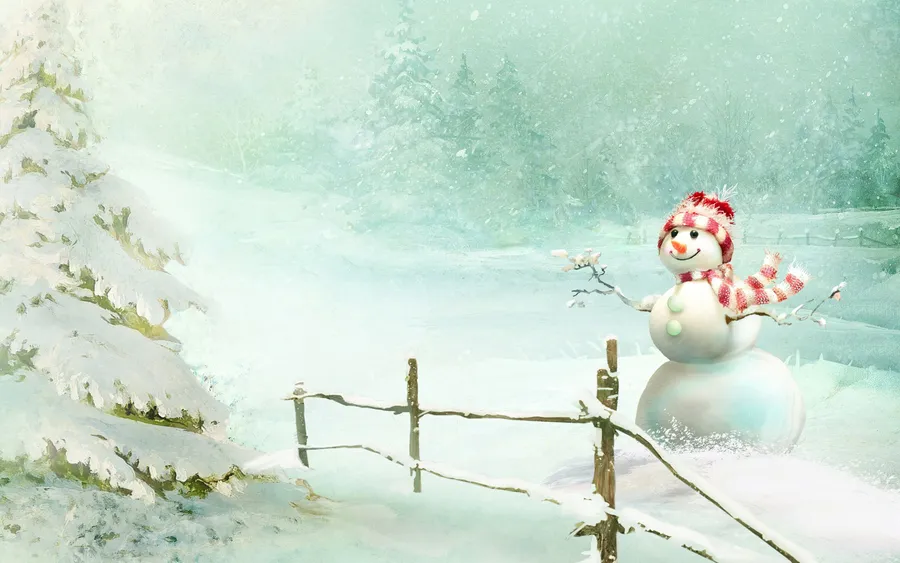 A Cheery Christmas Snowman Smiles Against A Frosty Winter Background Wallpaper -