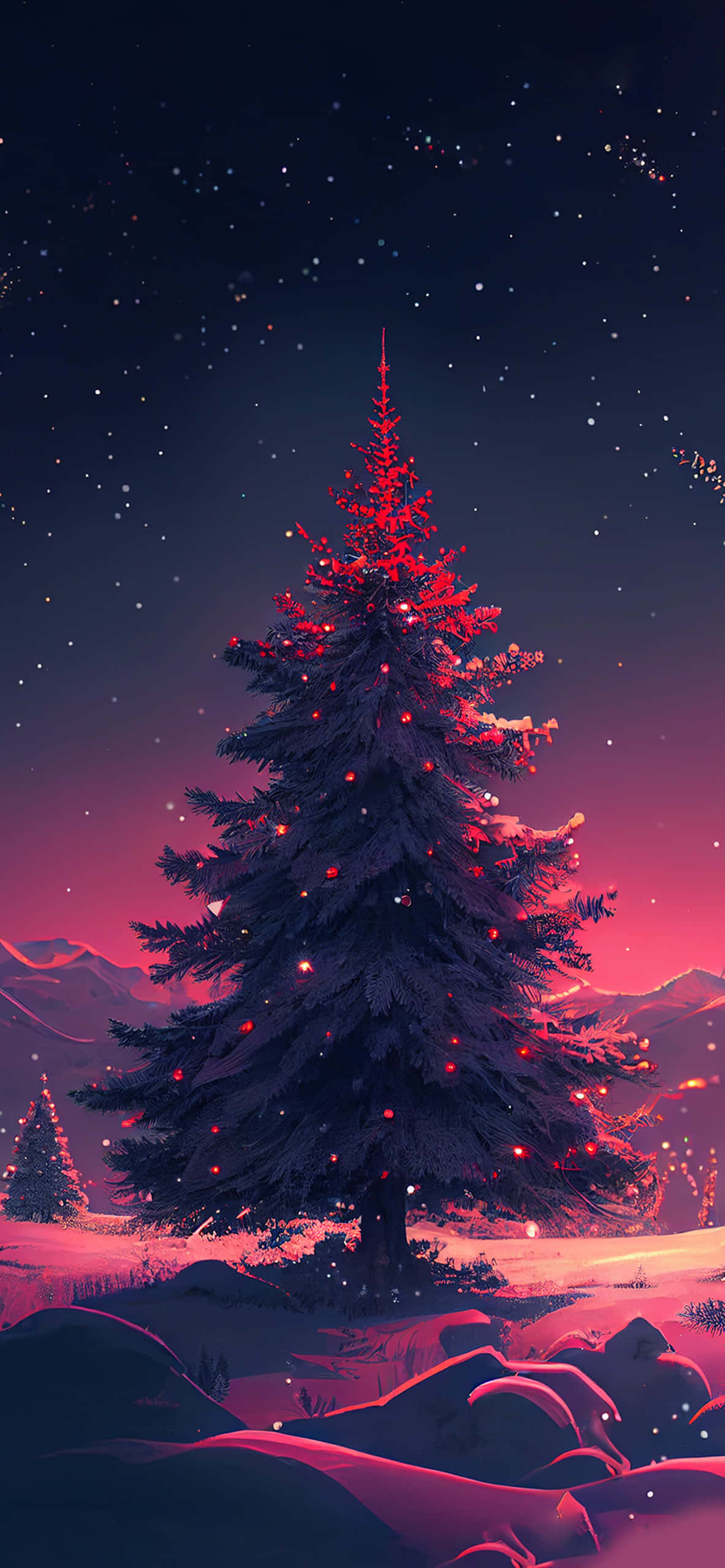 Vibrant Christmas Tree Snowy Night.jpg Wallpaper -