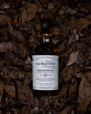 "a Timeless Bottle Of The Balvenie Whiskey Settles Amongst The Fallen Autumn Leaves." Wallpaper -