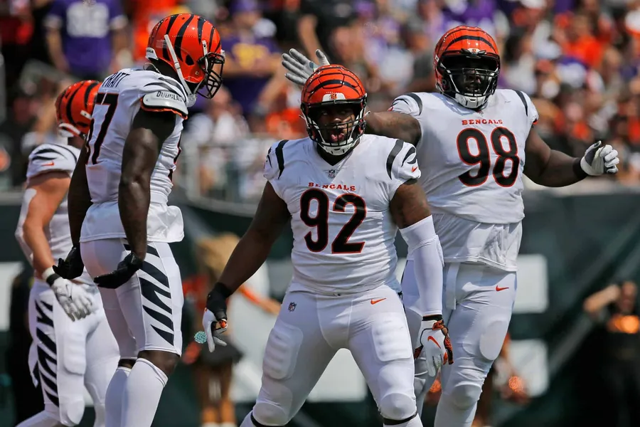 Cincinnati Bengals Bj Hill With Sam Hubbard And Dj Reader Wallpaper -