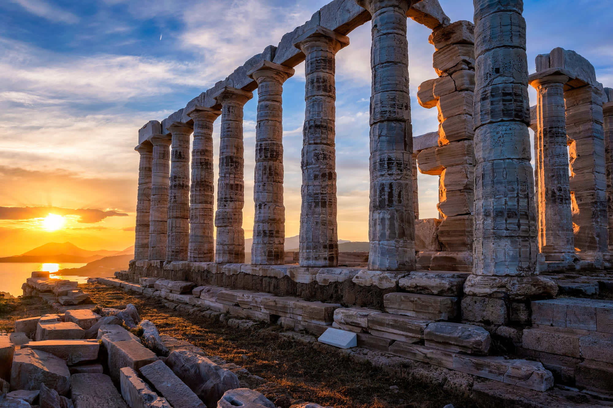 Blue And Orange Sunset Sounion Wallpaper -