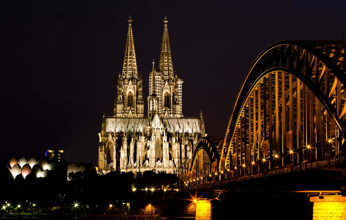 Dazzling Cologne Cathedral At Night Wallpaper -