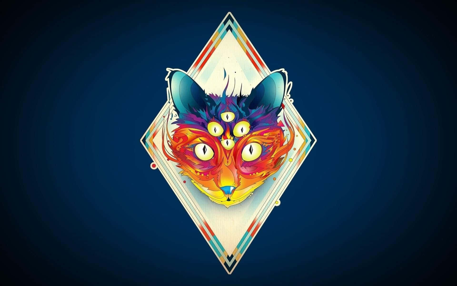 Related Cool Art Cat Head With Six Eyes Wallpaper