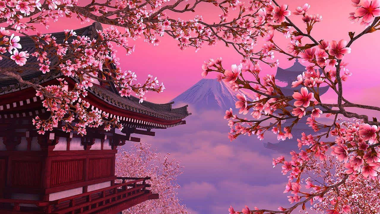 Dark Cherry Blossom Tree With The Mt. Fuji Wallpaper -