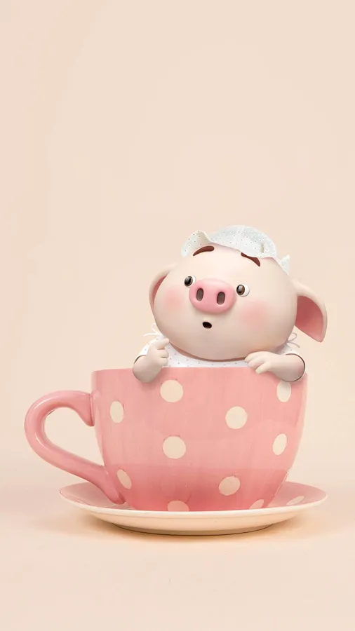 A Cartoon Pig Sitting On A Beige Background Wallpaper -