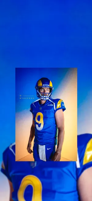 A Blue And Yellow Background With A Rams Player Wallpaper -