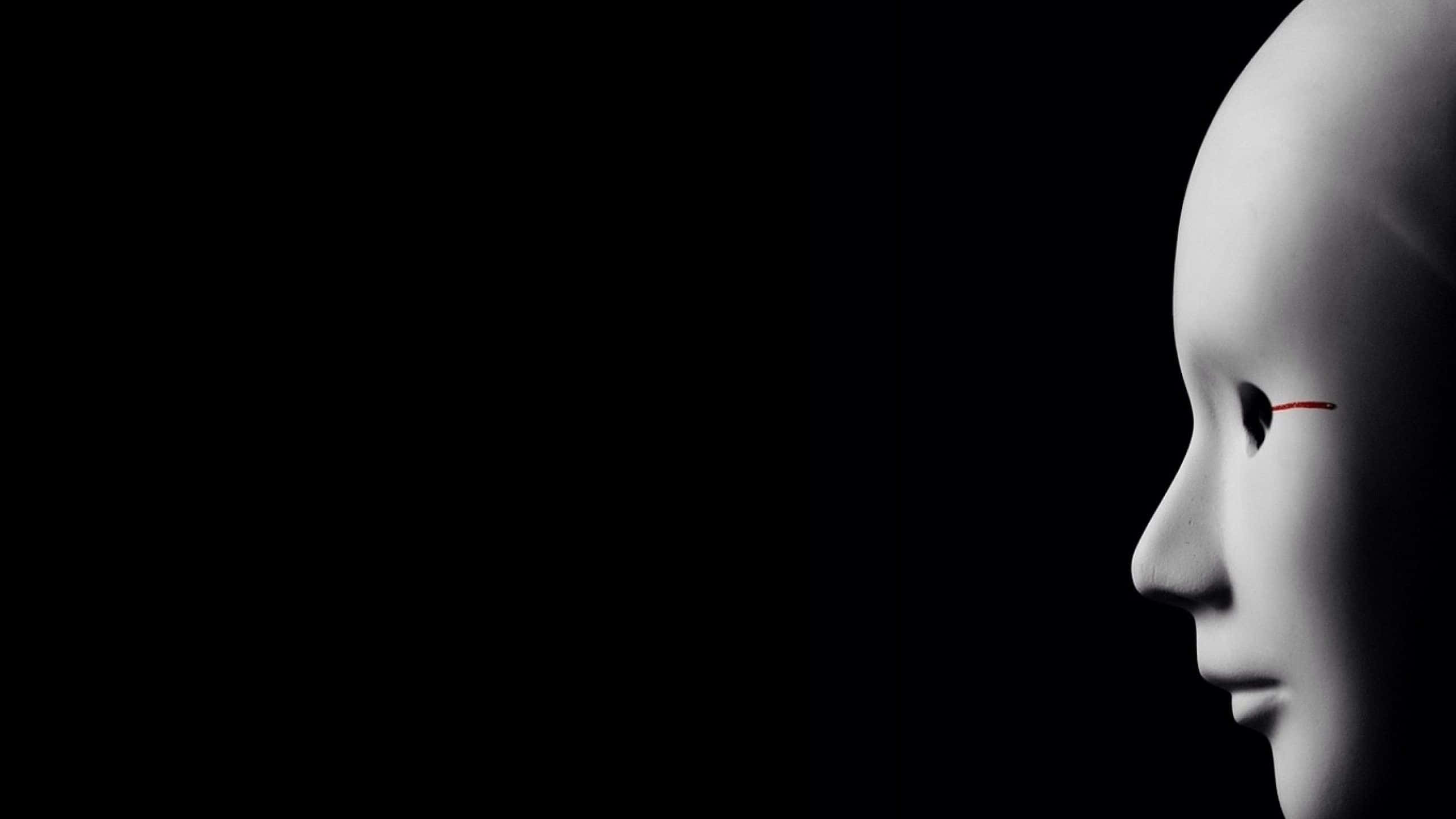 A Woman With A Scary Face Is Standing In The Dark Wallpaper -
