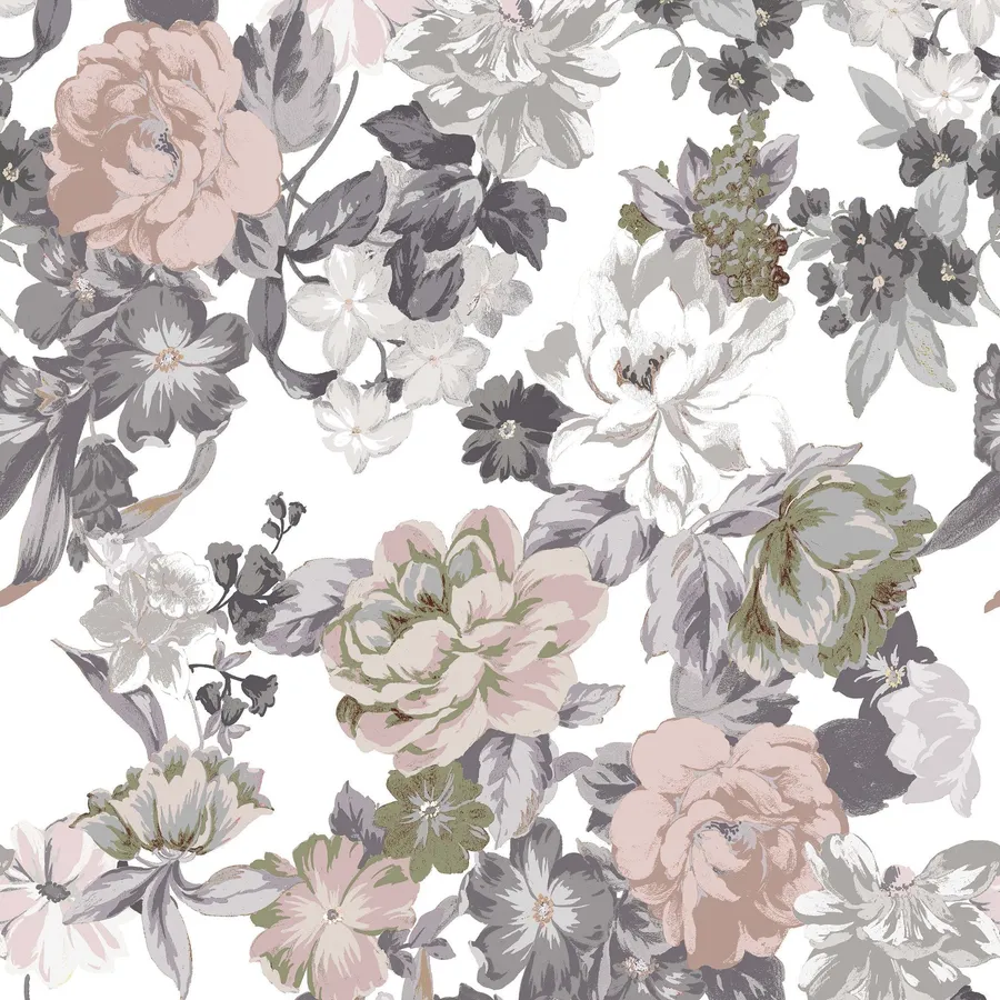 A Pink Floral Wallpaper With Green Leaves Wallpaper -