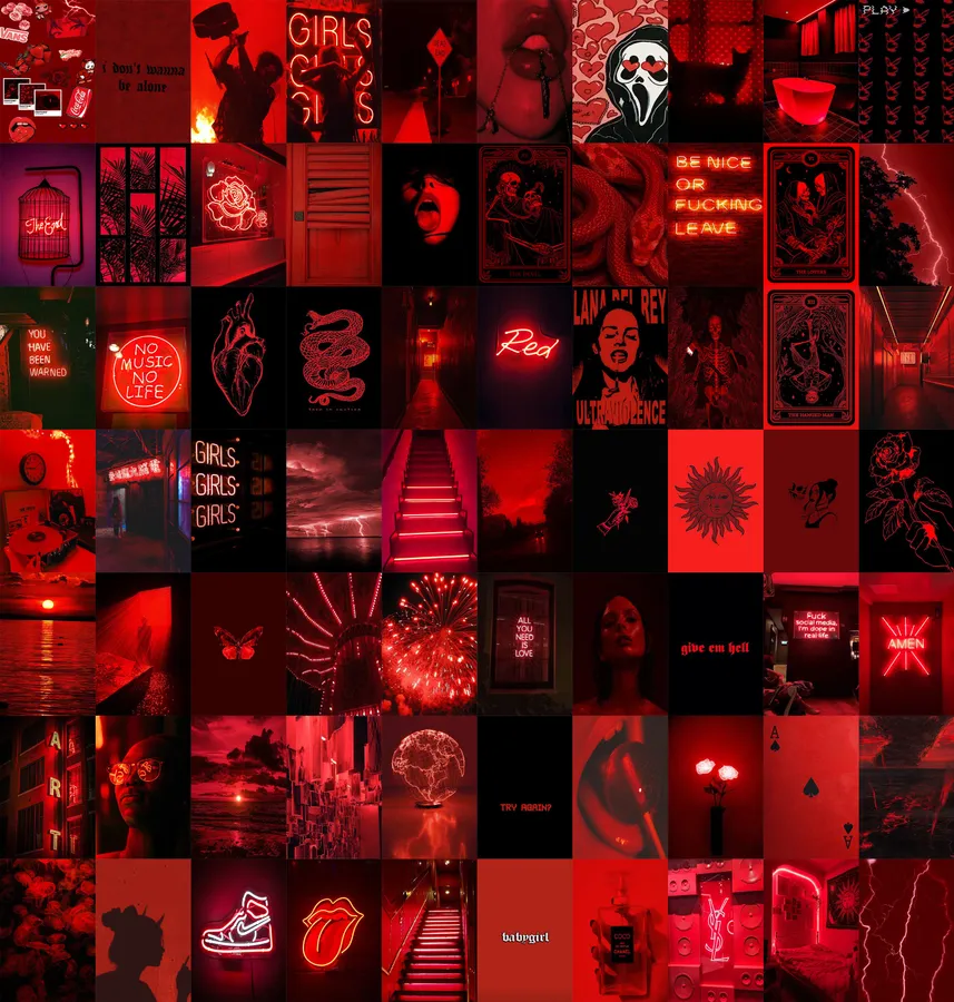 All Neon Red Aesthetic Collage Wallpaper -