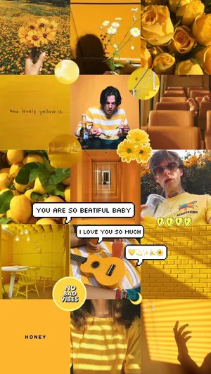 Yellow Aesthetic Good Vibes Collage Wallpaper  -