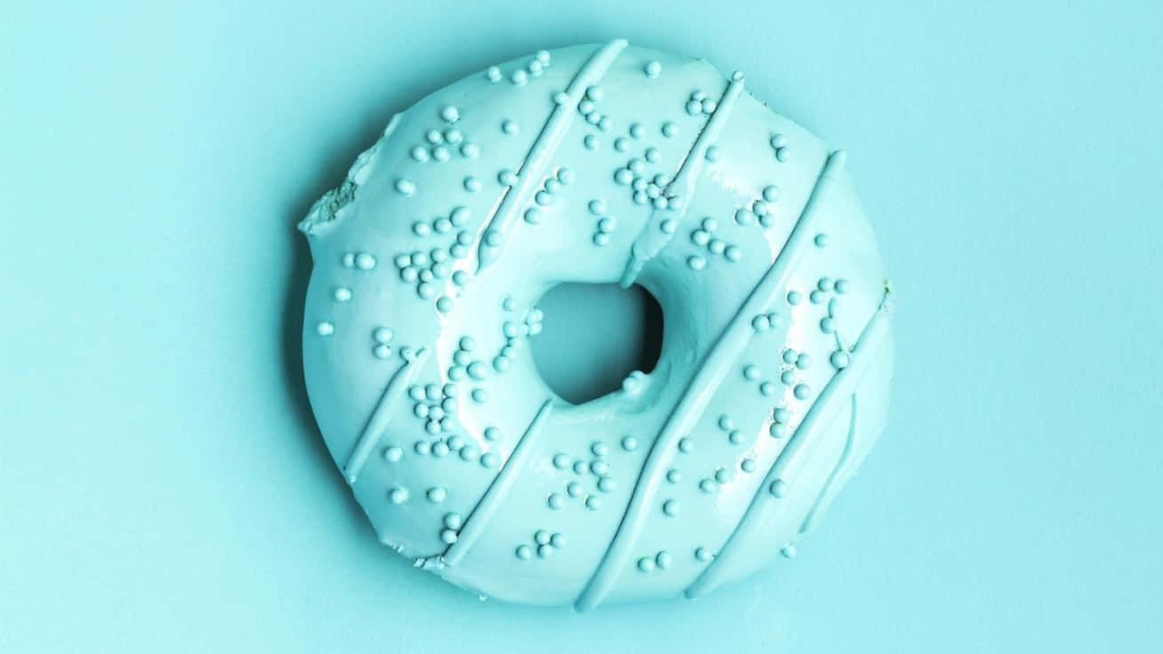 Cute Donut In Teal Aesthetic Laptop Wallpaper