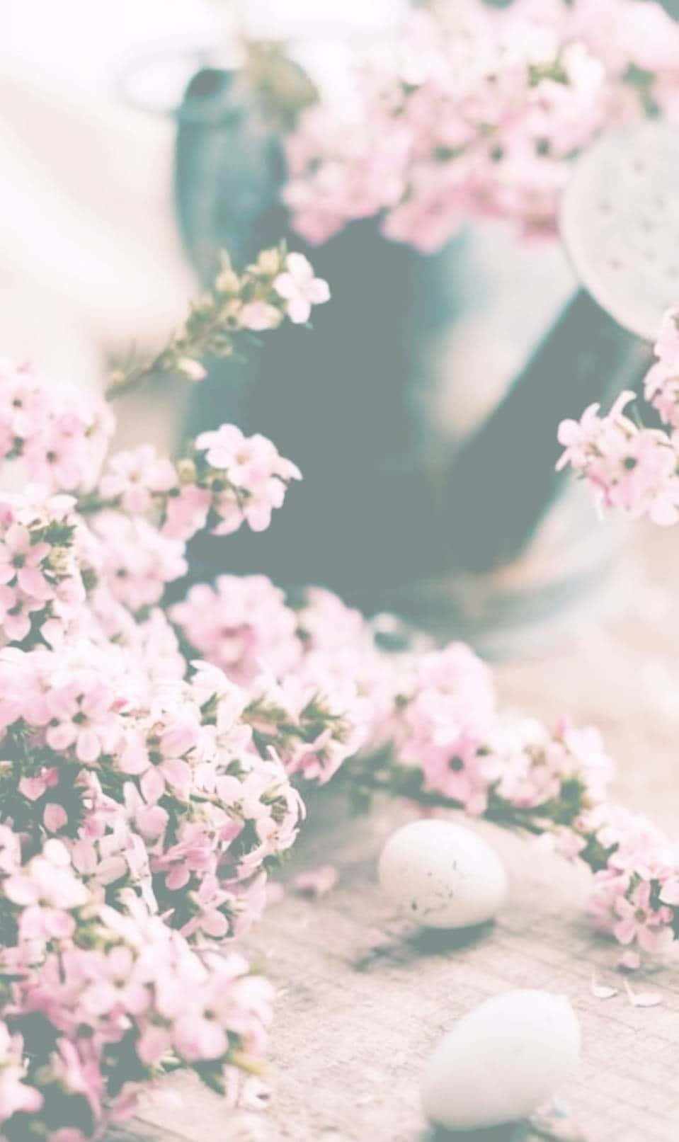 Cute Easter Iphone With Eggs And Flowers Wallpaper
