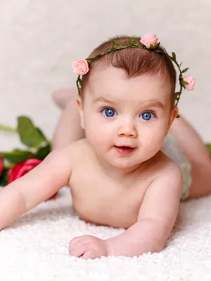 "charming Baby Girl With Floral Headband Radiates Innocence And Joy" Wallpaper -
