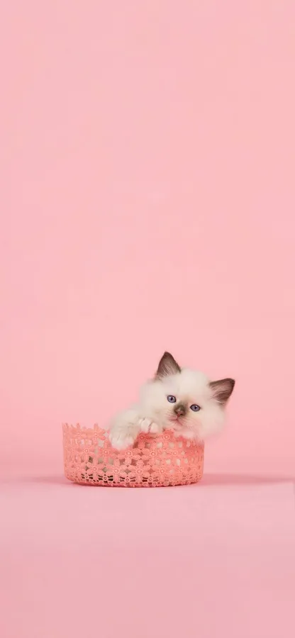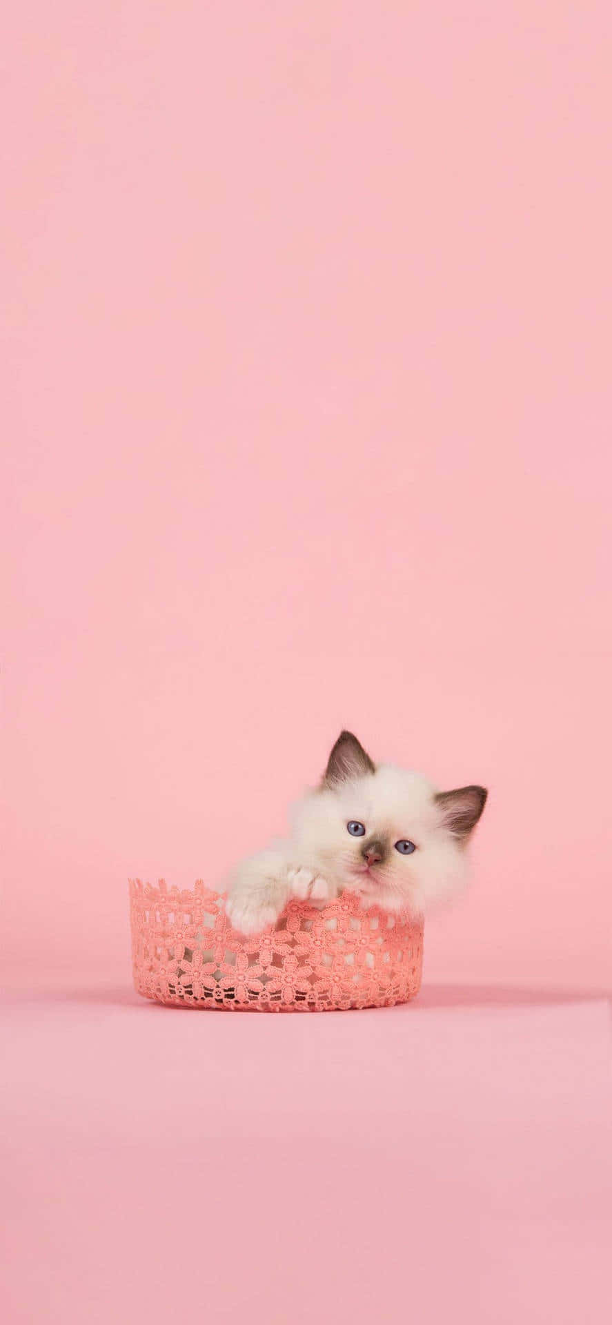 Cute Kittenin Pink Basket Wallpaper