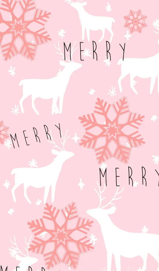 Related Cute Pink Christmas Snowflakes And Reindeers Wallpaper
