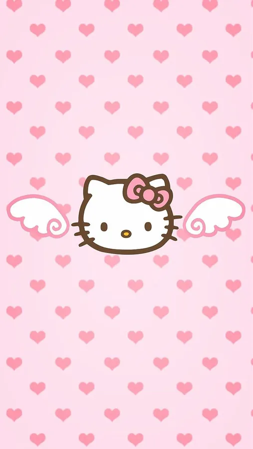 Hello Kitty On A Pink Background With Hearts Wallpaper -