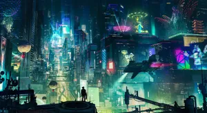 Vibrant Yet Dystopian Cityscape Wallpaper -