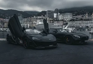 Majestic Black Amg Gt R Glowing Under The City Lights Wallpaper -