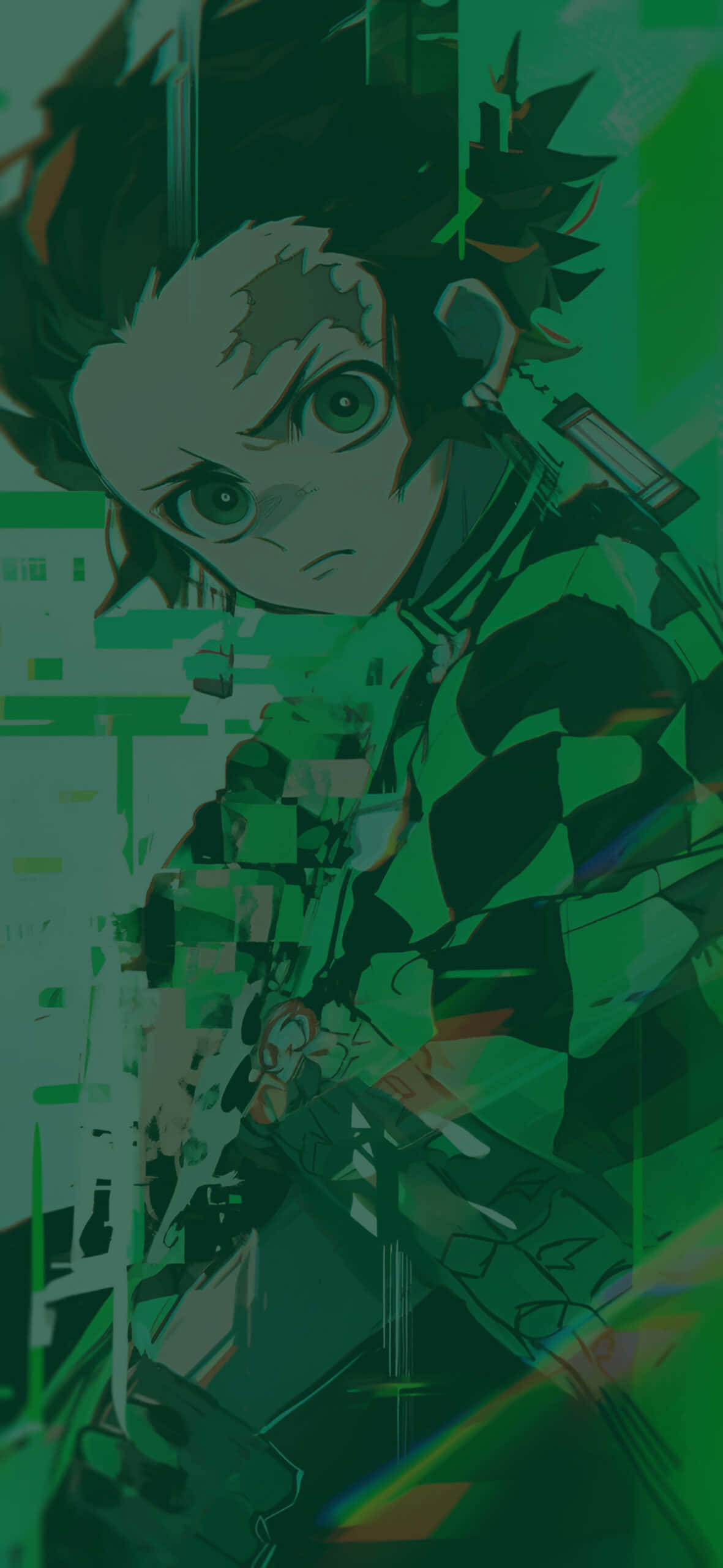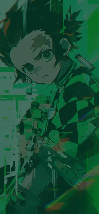 Demon Slayer Green Glitch Art Wallpaper -