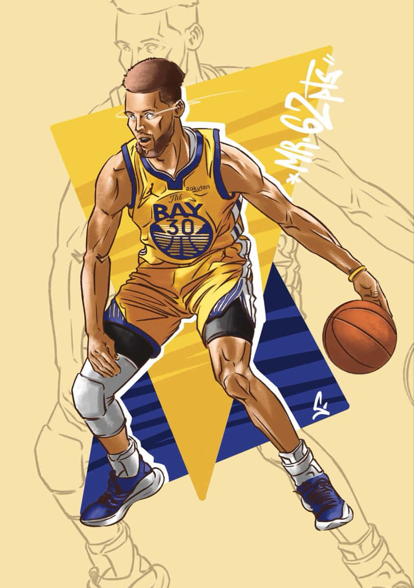 A Cartoon Version Of Basketball Superstar Stephen Curry Wallpaper -