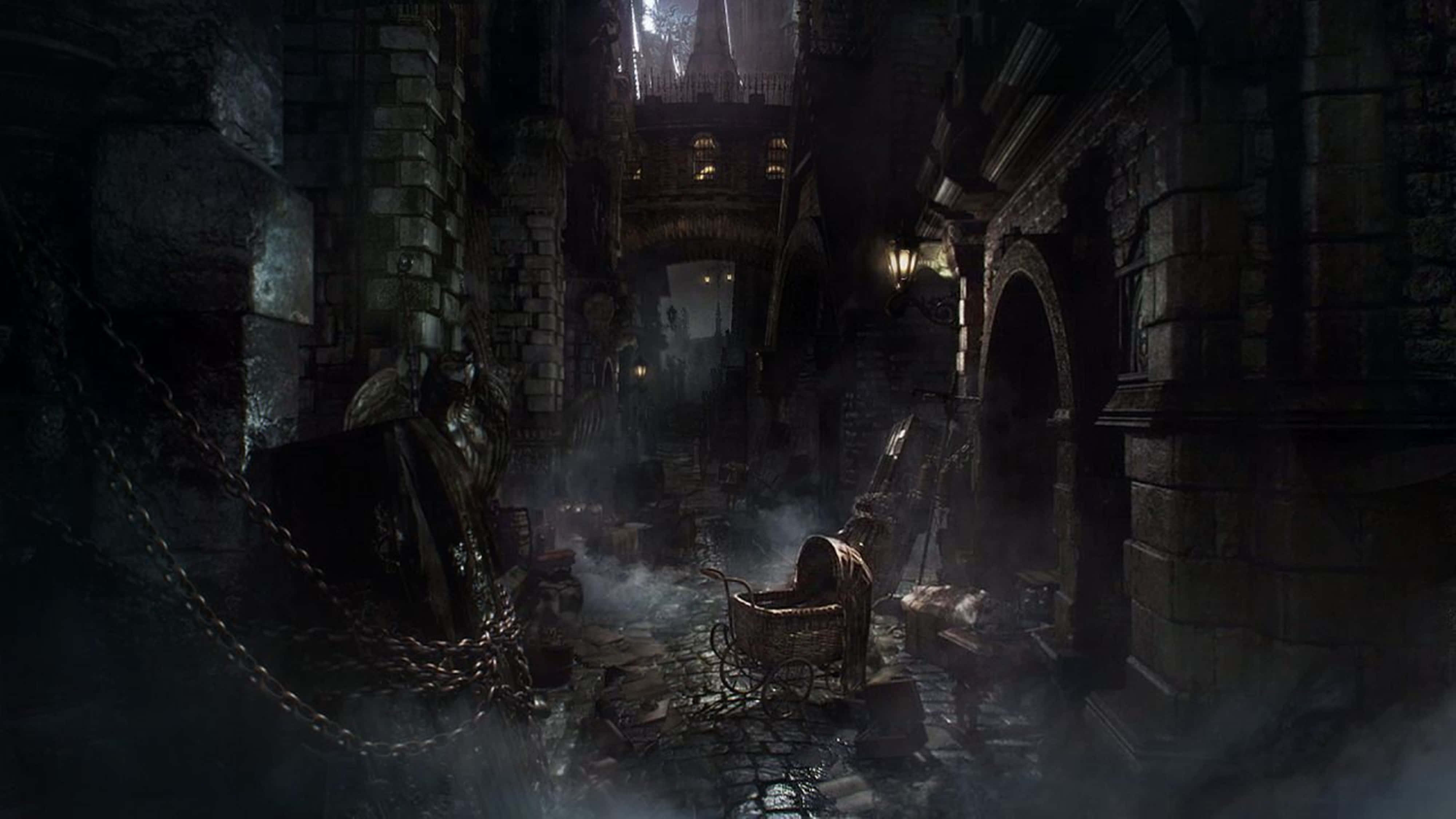 Experience The Horror Of The Cursed City Of Yharnam In Stunning 4k Hd Resolution Wallpaper -