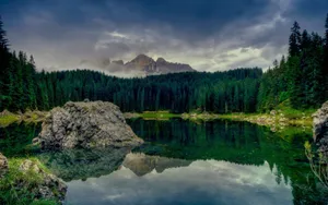 "experience The Tranquility Of A Beautiful Dark Green Forest." Wallpaper -