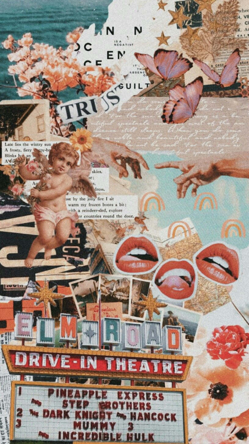 A Colorful And Whimsical Vintage Collage Wallpaper -
