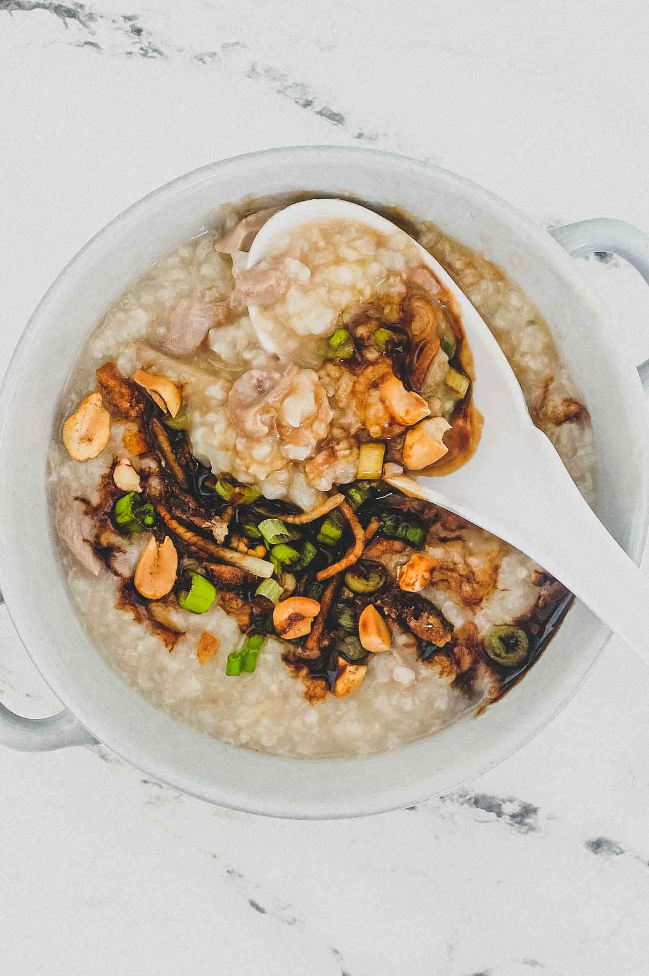 Duck Rice Congee Overhead Angle Shot Wallpaper -