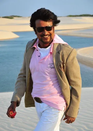 Rajinikanth, Indian Superstar, Boldly Trekking Across Desert Dunes. Wallpaper -