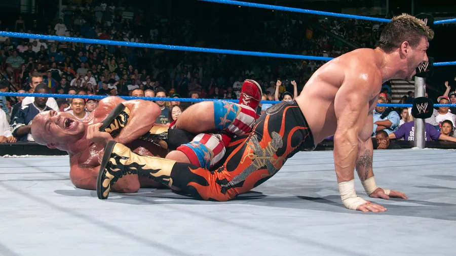 Kurt Angle Holding Eddie Guerrero In A Leg Lock Wallpaper -