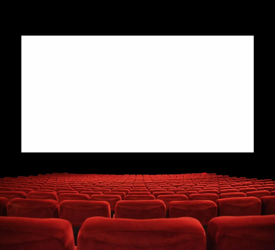 Elegant White Screen Theater With Red Chairs -
