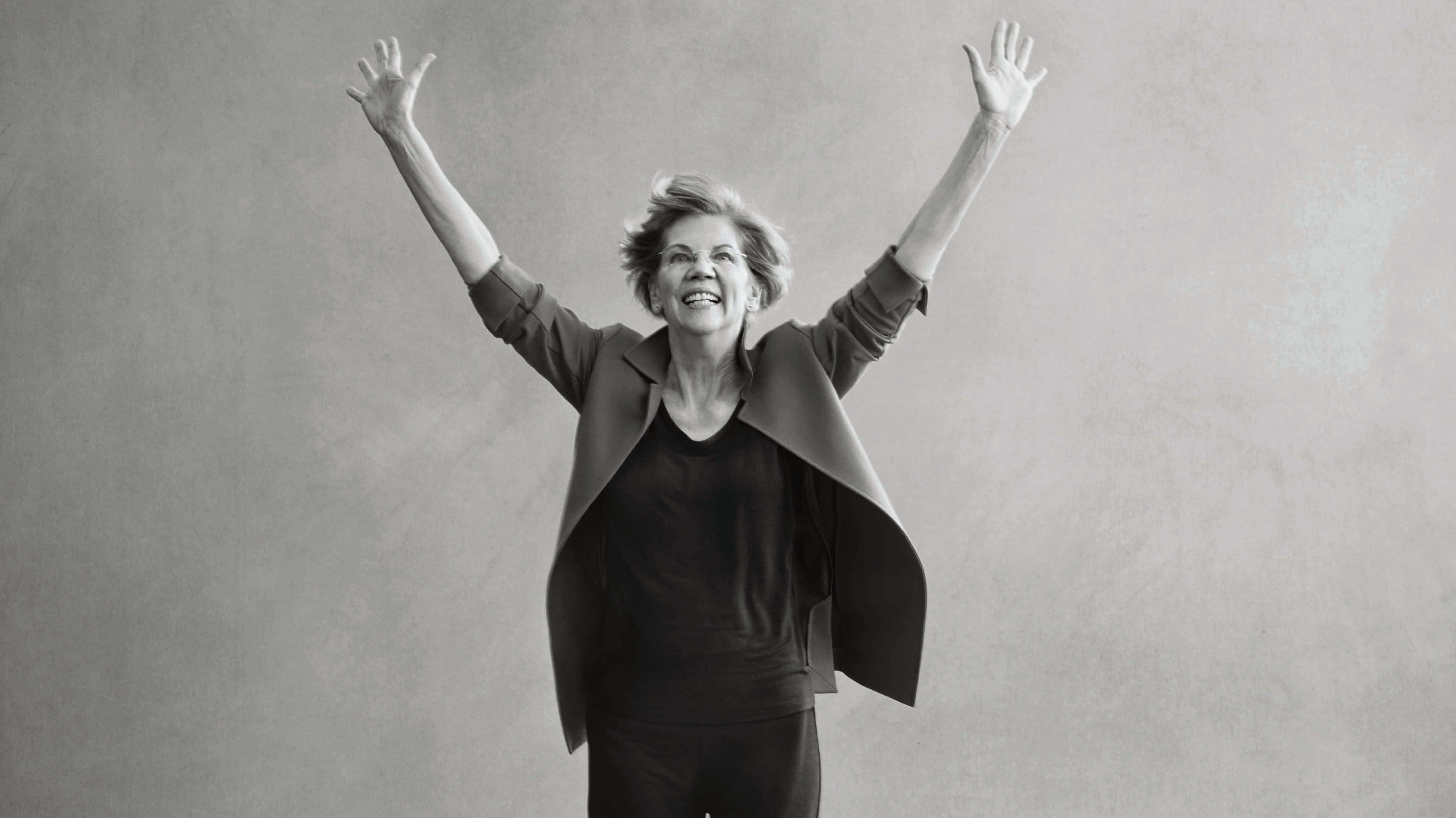 Elizabeth Warren Raising Her Arms In A Powerful Stance -