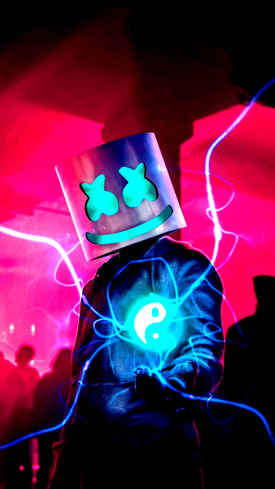 Image Marshmello Appears In Neon Brightness On Iphone Wallpaper -