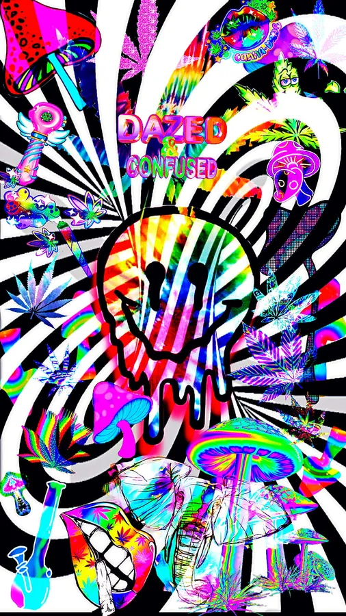Image A Playful And Colorful Scene Of A Happy Trippy Hippie Wallpaper -