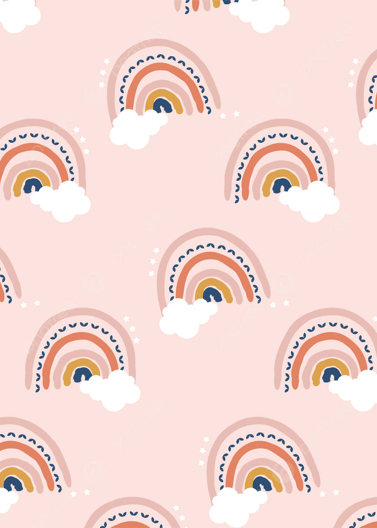 A Drawing Of A Rainbow With A Pink, Beige And Brown Background Wallpaper -