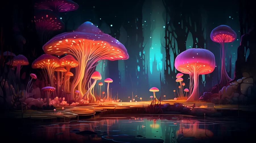 Neon Glow Mushroom Art Wallpaper -