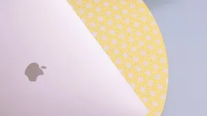 "yellow Pastel Aesthetic Computer Setup" Wallpaper -