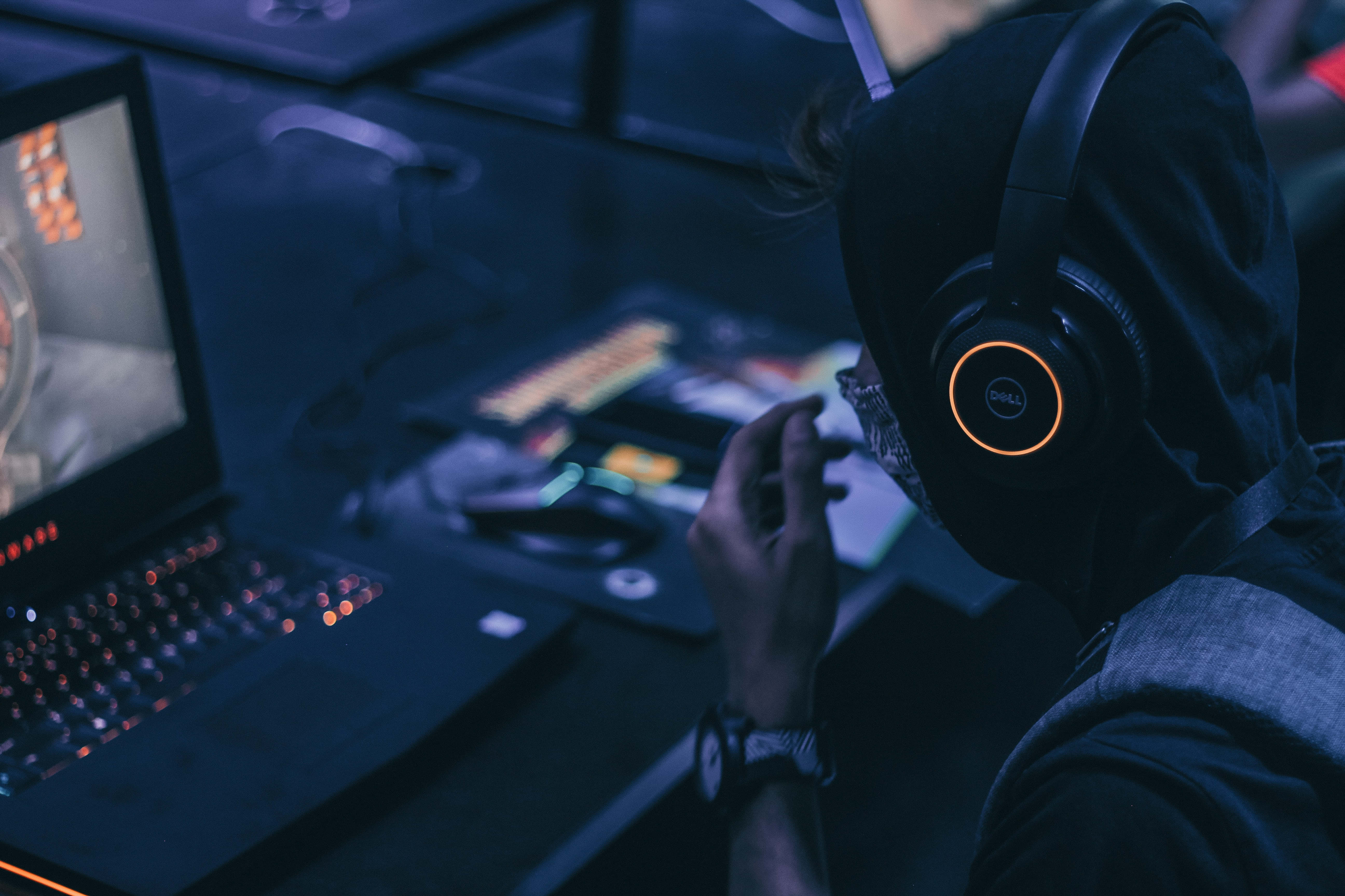 Image A Person Working With Headphones And A Laptop Wallpaper -
