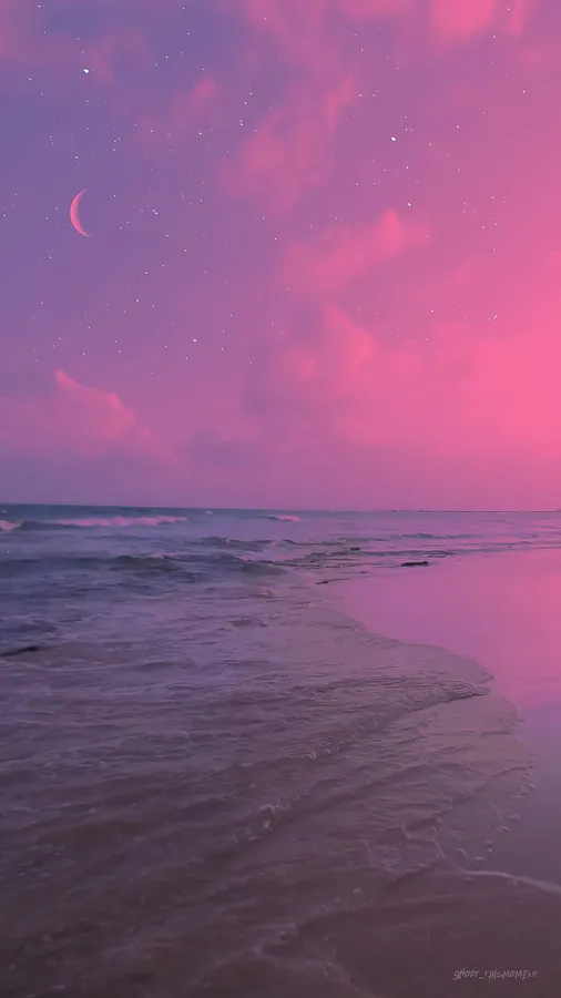 Enjoy A Beautiful Beach Sunset With A Pink And Tranquil Aesthetic. Wallpaper