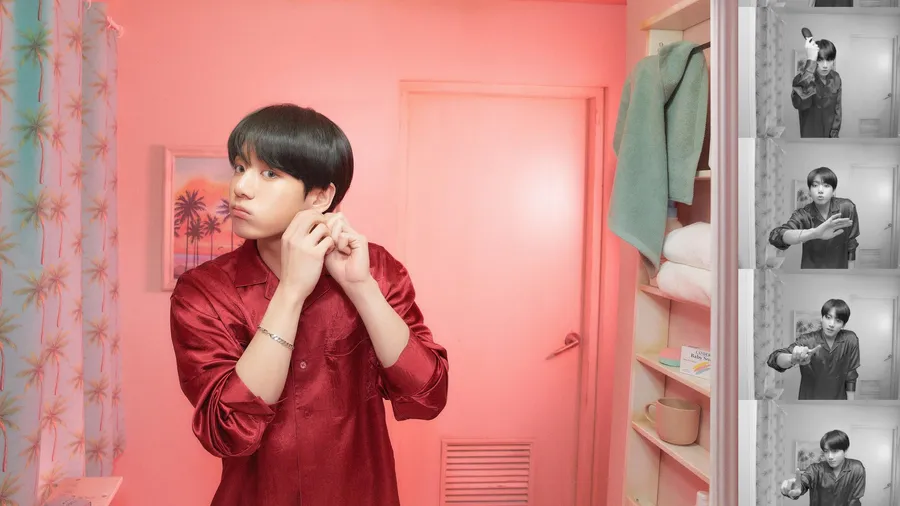 Enjoy The Aesthetic Perfection Of Bts With This Pink Desktop Wallpaper Wallpaper -