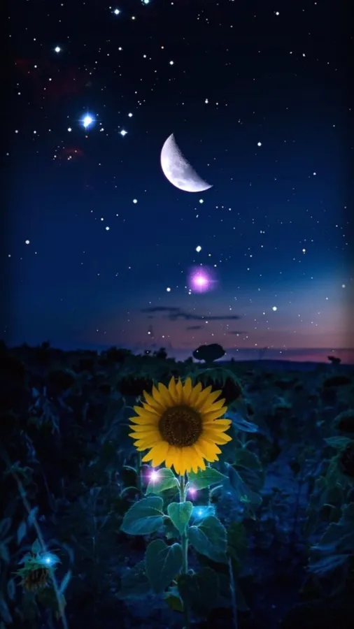 A Painting Of A Sunflower With Stars On It Wallpaper -
