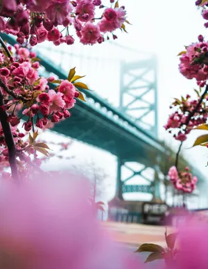 "beautiful Sakura Blossoms Over A Peaceful Bridge" Wallpaper -