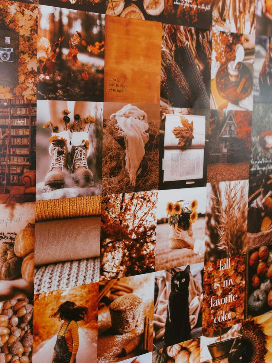 A Collage Of Autumn Pictures And Pumpkins Wallpaper -