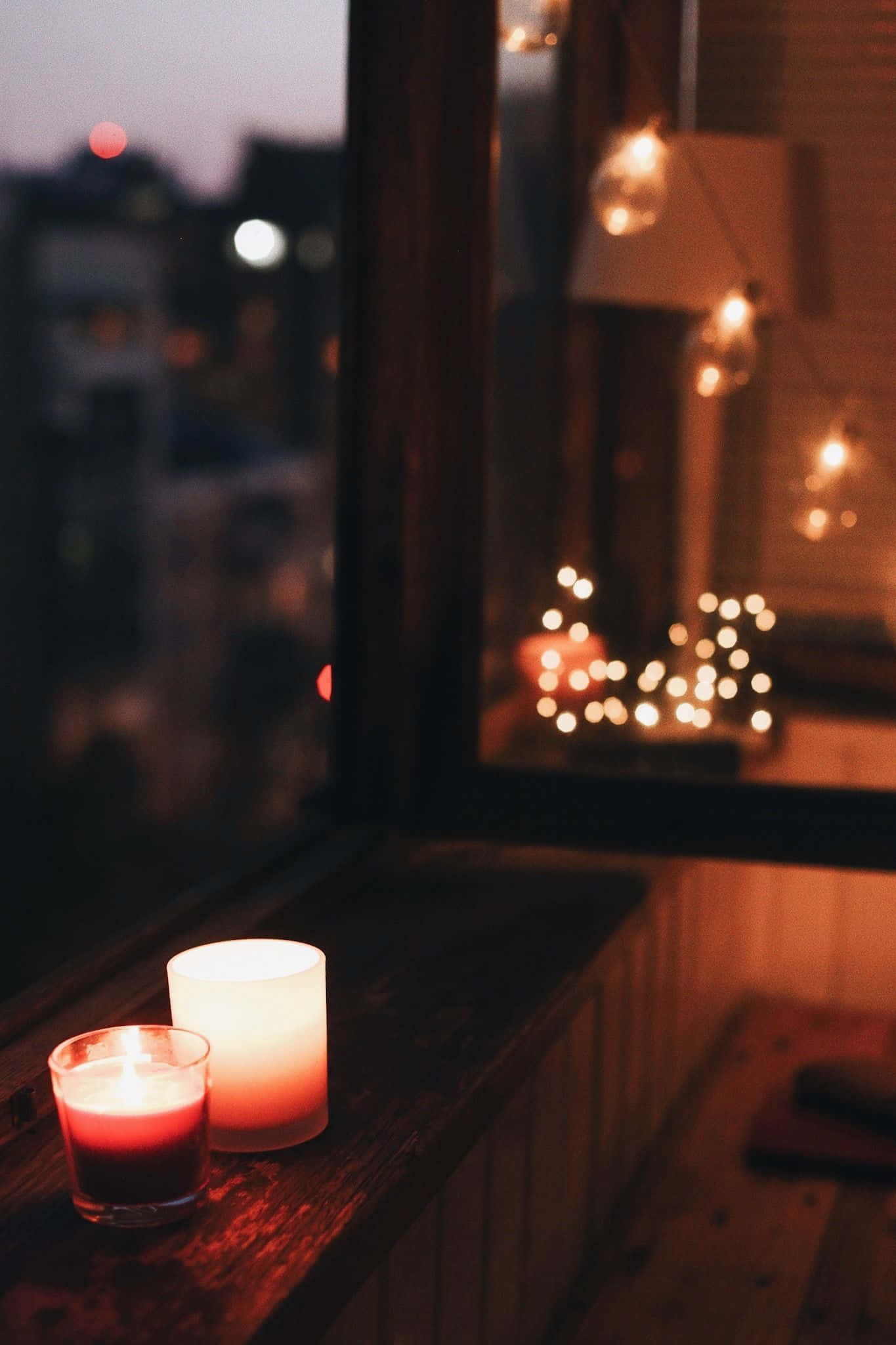 A Window With Candles, A Book, And A Blanket Wallpaper -