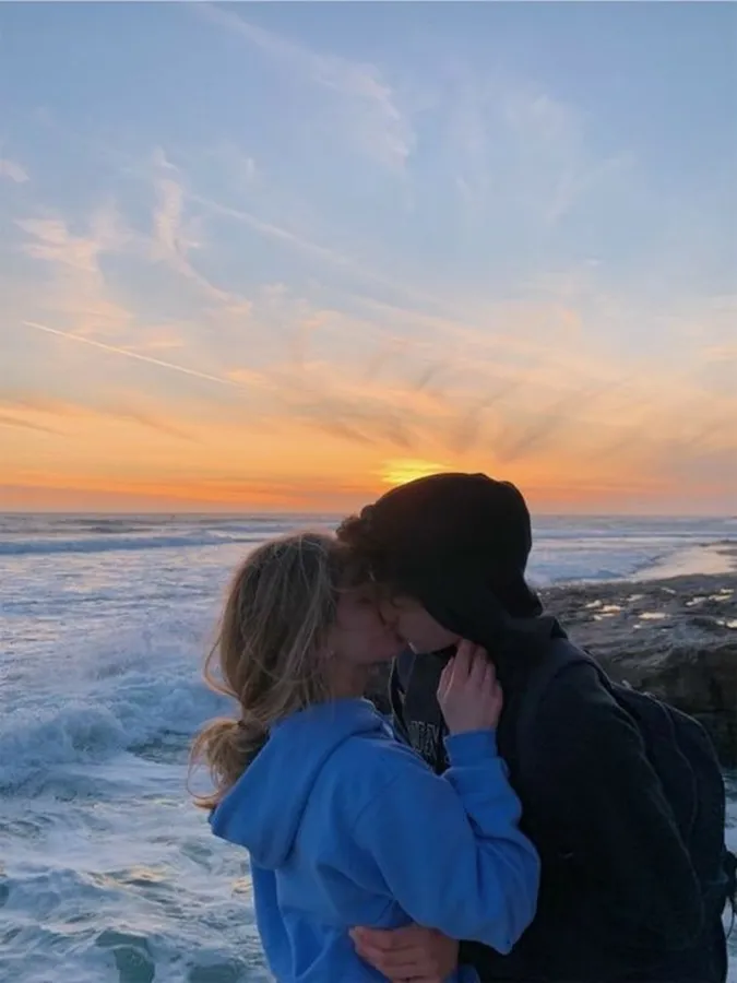 Girlfriend And Boyfriend Enjoying A Romantic Sunset Together Wallpaper -