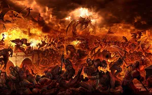 Two Armies Clash On A Battlefield In An Incredible And Epic Battle Wallpaper -