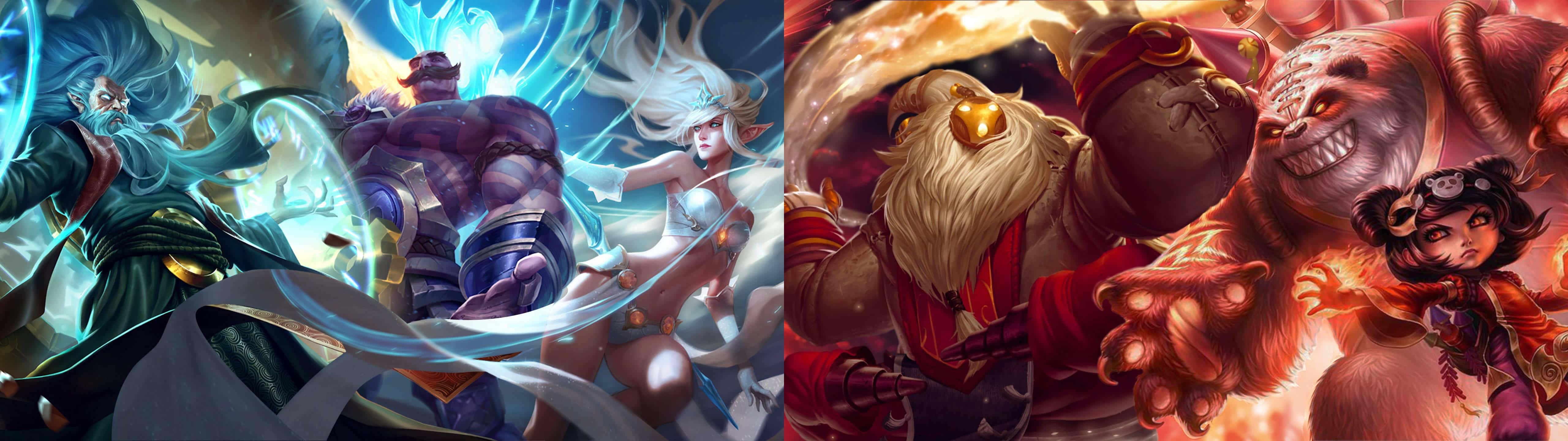 League Of Legends Dual Screen Four Heroes Wallpaper -