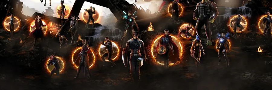 Experience The Grandiose Of The Avengers In Dual Screen Wallpaper