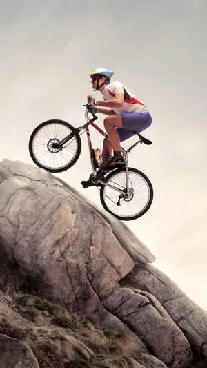 A Man Is Doing A Jump On A Mountain Bike Wallpaper -