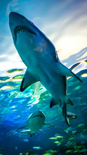 An Awesome View Of A Cool Shark Swimming Beneath The Surface Of The Ocean Wallpaper -